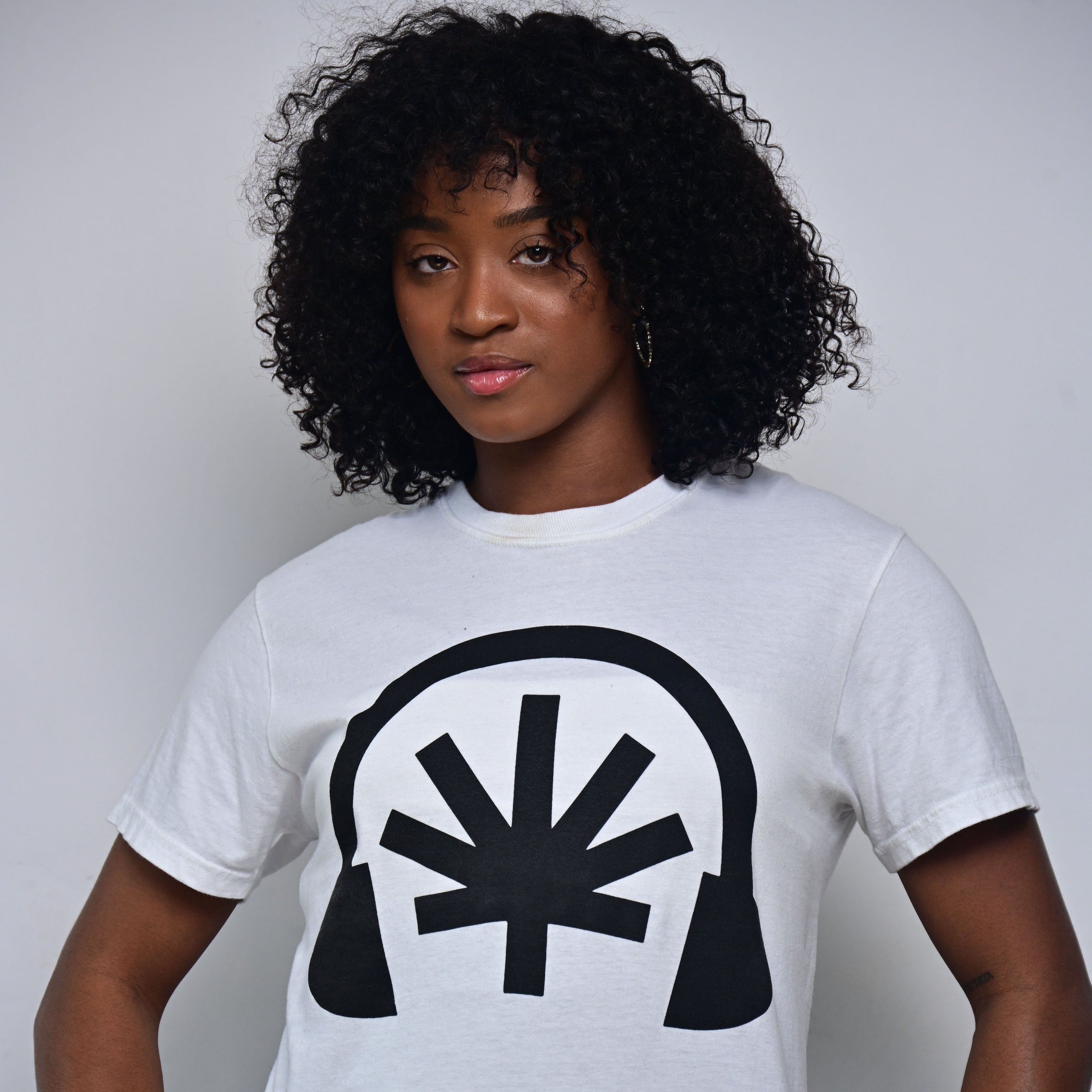 Black Headphones — White Tee (Heavyweight)