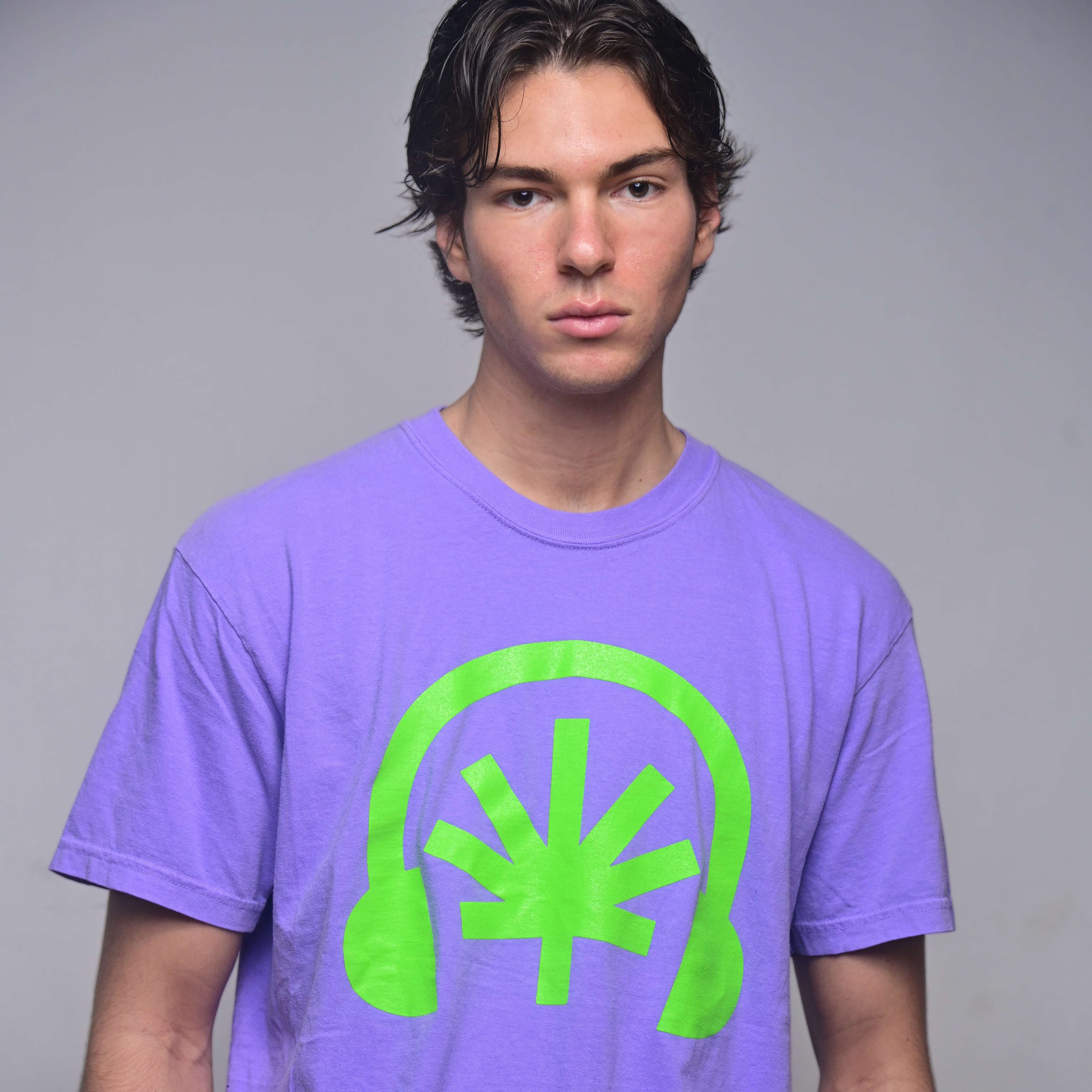 Acid Green Headphones — Violet Tee (Heavyweight)