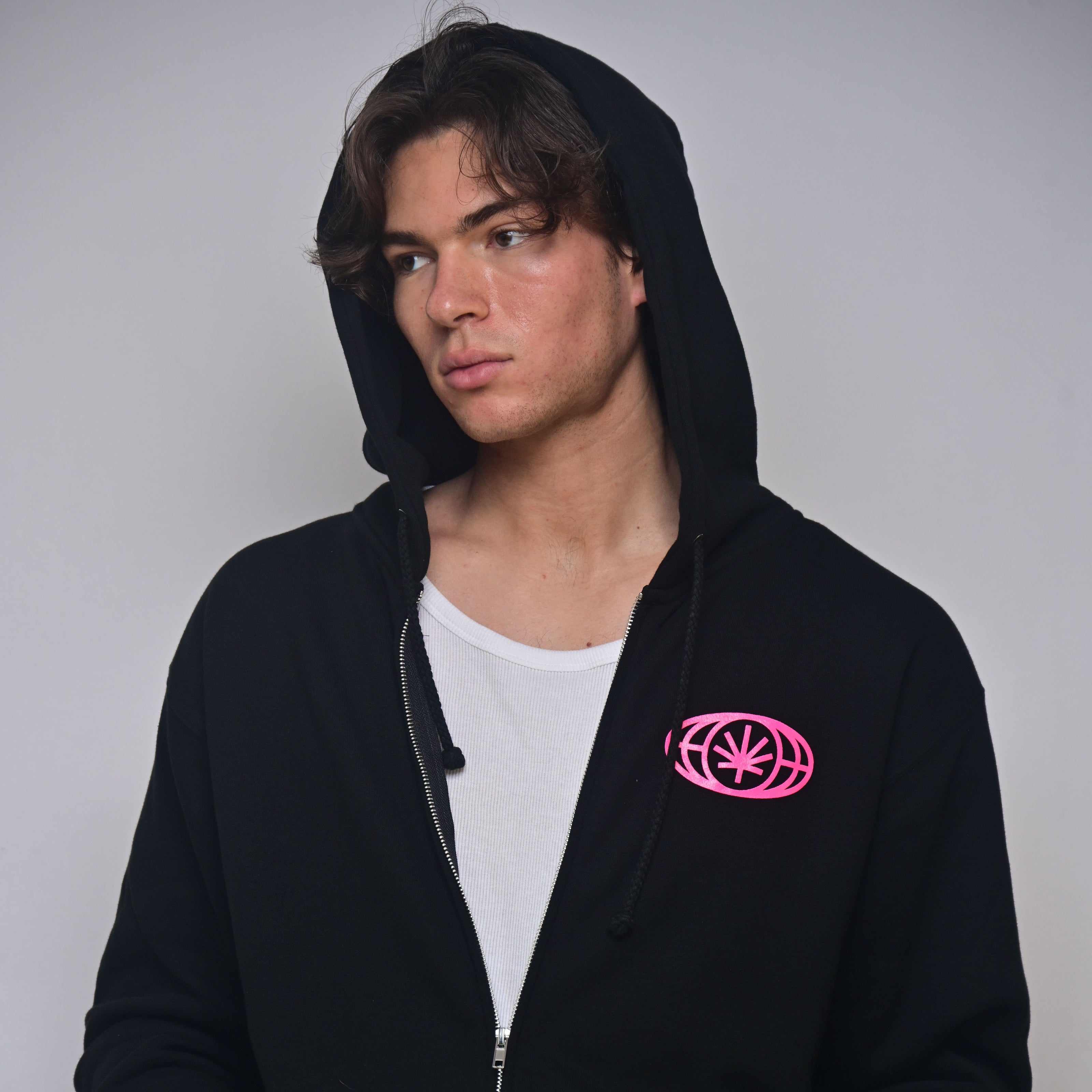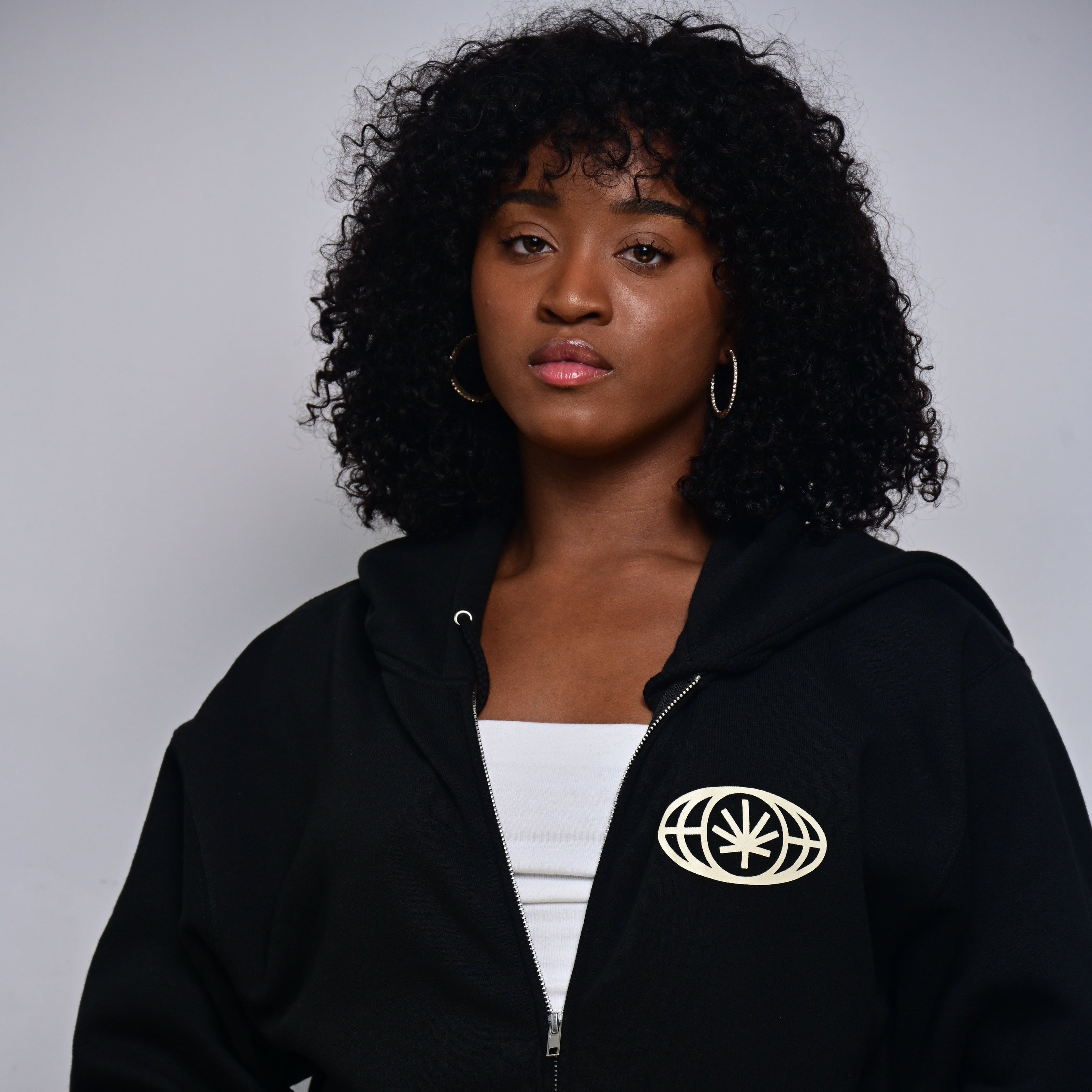 Cream Headphones — Black Zip Hoodie (Heavyweight Fleece)