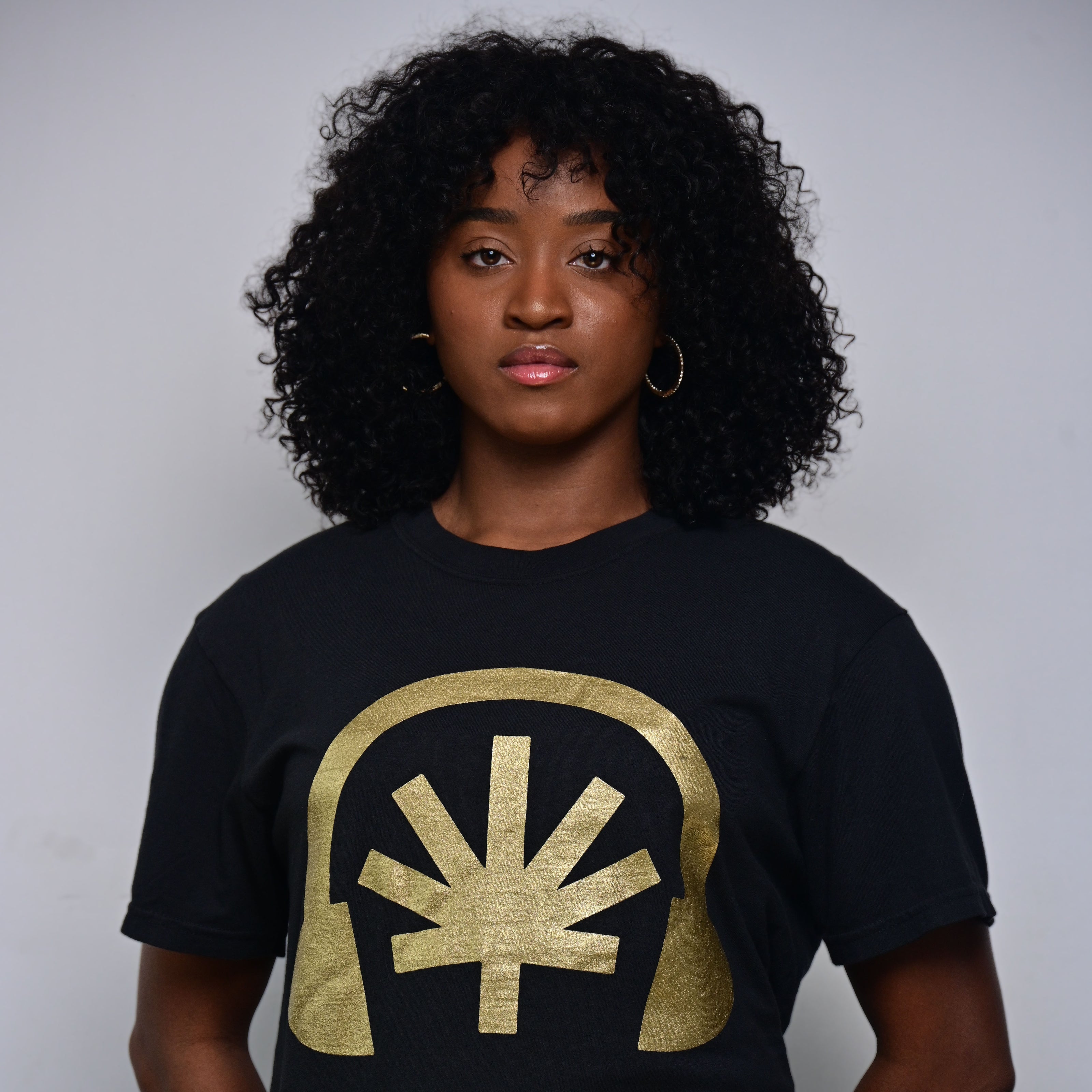 Gold Headphones / Word Mark Combo — Black Tee (Heavyweight)